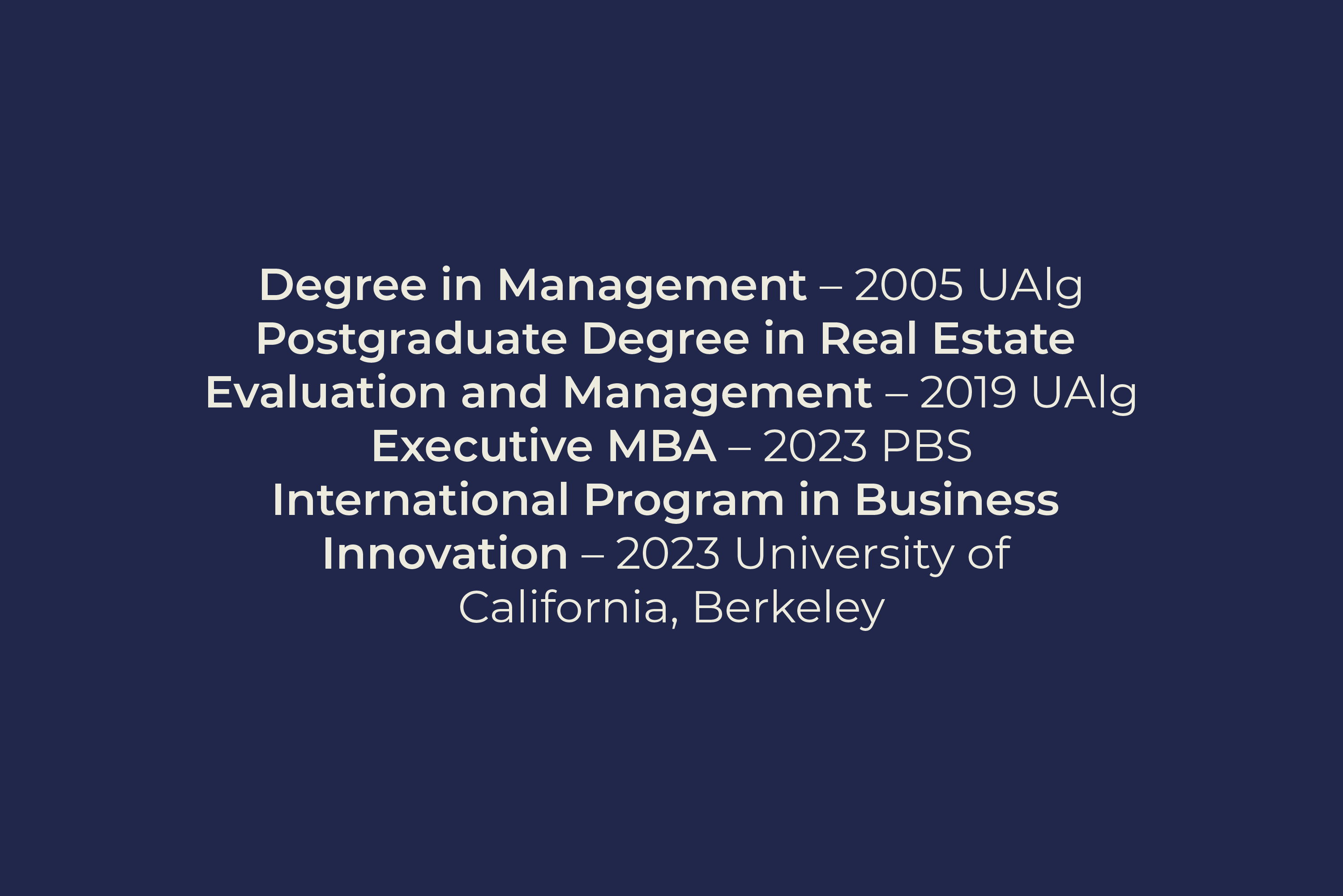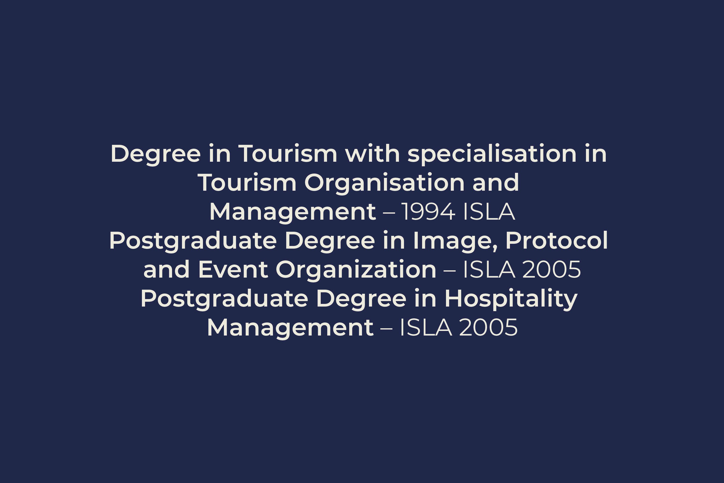 Degree in Architecture with specialisation in Urban Regeneration – 1995 Universidade Lusíada